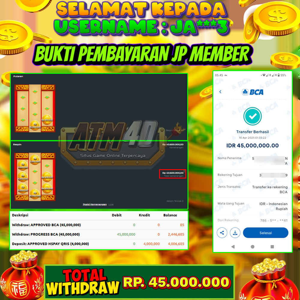 Selamat Kepada Member Yang Berhasil Mendapatkan Jackpot Dipermainan JILI GAME, Berikut Bukti Jackpot Member Di Situs ATM4D