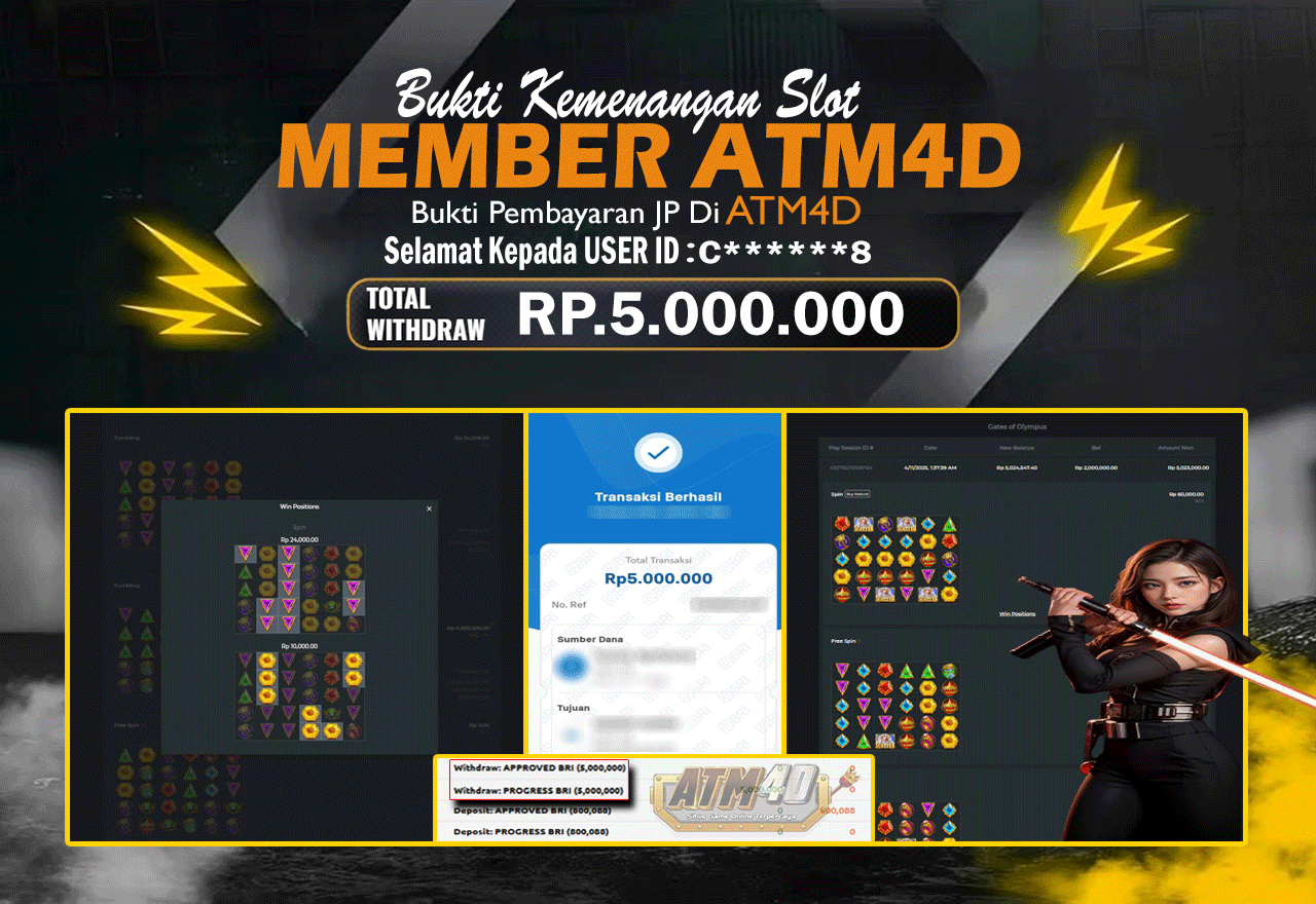 Jangan lewatkan kesempatan untuk meraih kemenangan besar. Daftar sekarang di ATM4D dan rasakan pengalaman bermain slot terbaik yang pernah ada! Putar gulungan, menangkan jackpot, dan jadilah bagian dari komunitas pemain sukses kami!