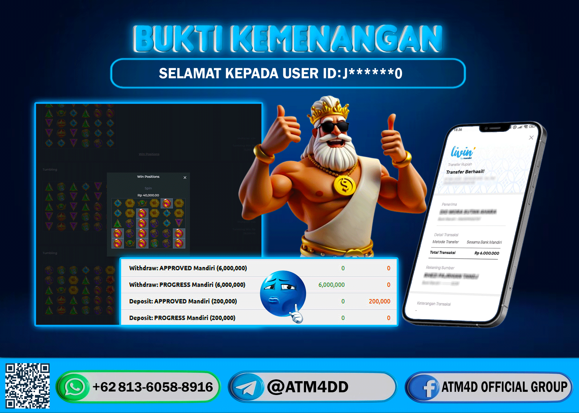 Jangan lewatkan kesempatan untuk meraih kemenangan besar. Daftar sekarang di ATM4D dan rasakan pengalaman bermain slot terbaik yang pernah ada! Putar gulungan, menangkan jackpot, dan jadilah bagian dari komunitas pemain sukses kami!
