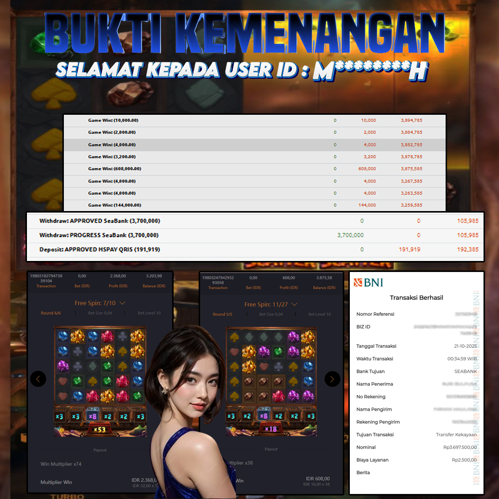 Bukti Kemenangan slot di provider PG SOFT JACKPOT SLOT GEMSTONE-GOLD