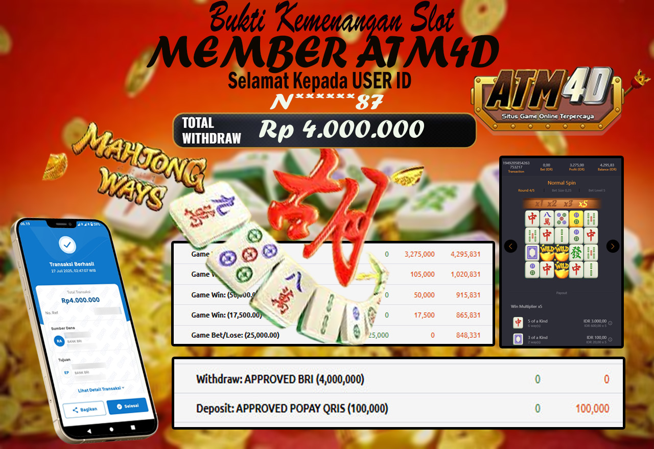 JACKPOT SLOT MAHJONG WAYS 27 JULI 2025, Bukti Kemenangan PG SOFT Menang Platform online, Situs Aman Tergacor dan Aman, Withdraw Berapapun Pasti Di Bayar Langsung, Maxwin Slot Online.