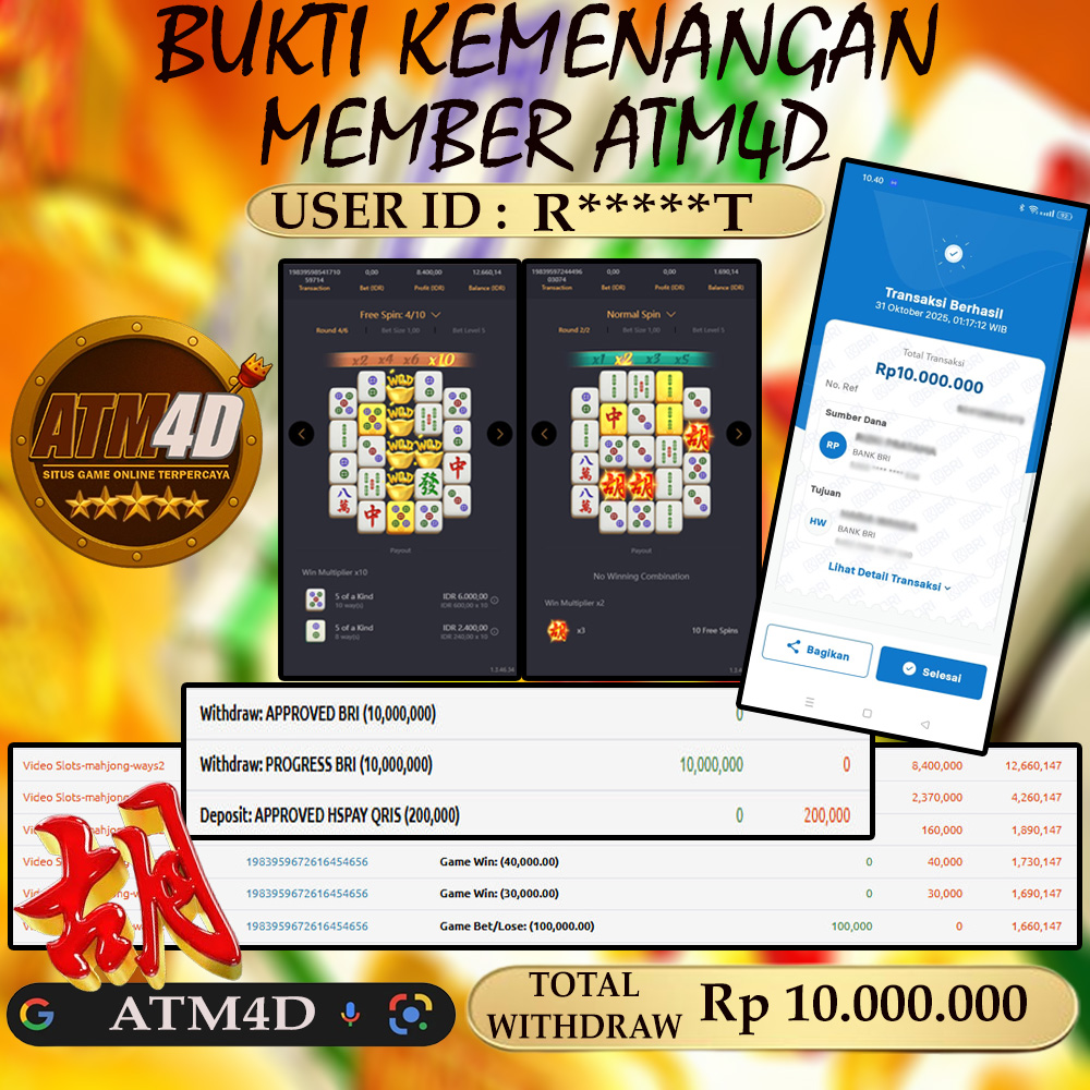Bukti Pembarayan Ini Sah Dan Dapat Dipertanggung Jawabkan, Withdraw Berapapun Pasti DI Bayar Lunas, Hati Hati Kepada Pihak Pihak Yang Mengatas namakan Pihak ATM4D Untuk Melakukan Penipuan
