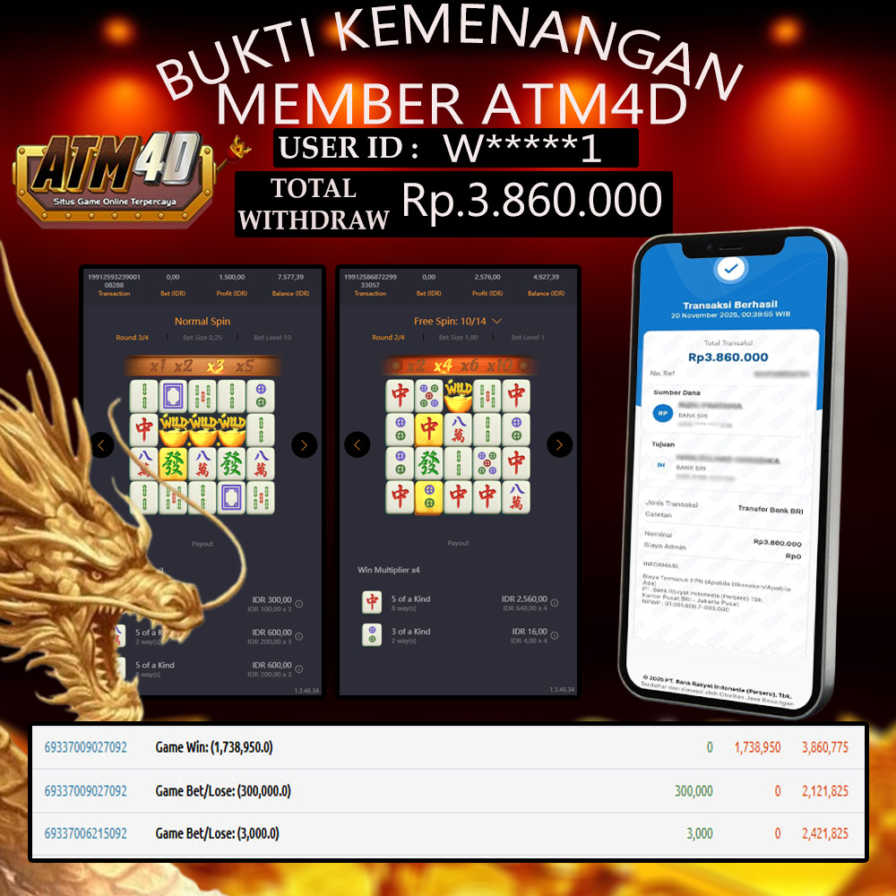 Selamat Kepada Member Yang Berhasil Mendapatkan Jackpot Dipermainan PG SOFT, Berikut Bukti Jackpot Member Di Situs ATM4D