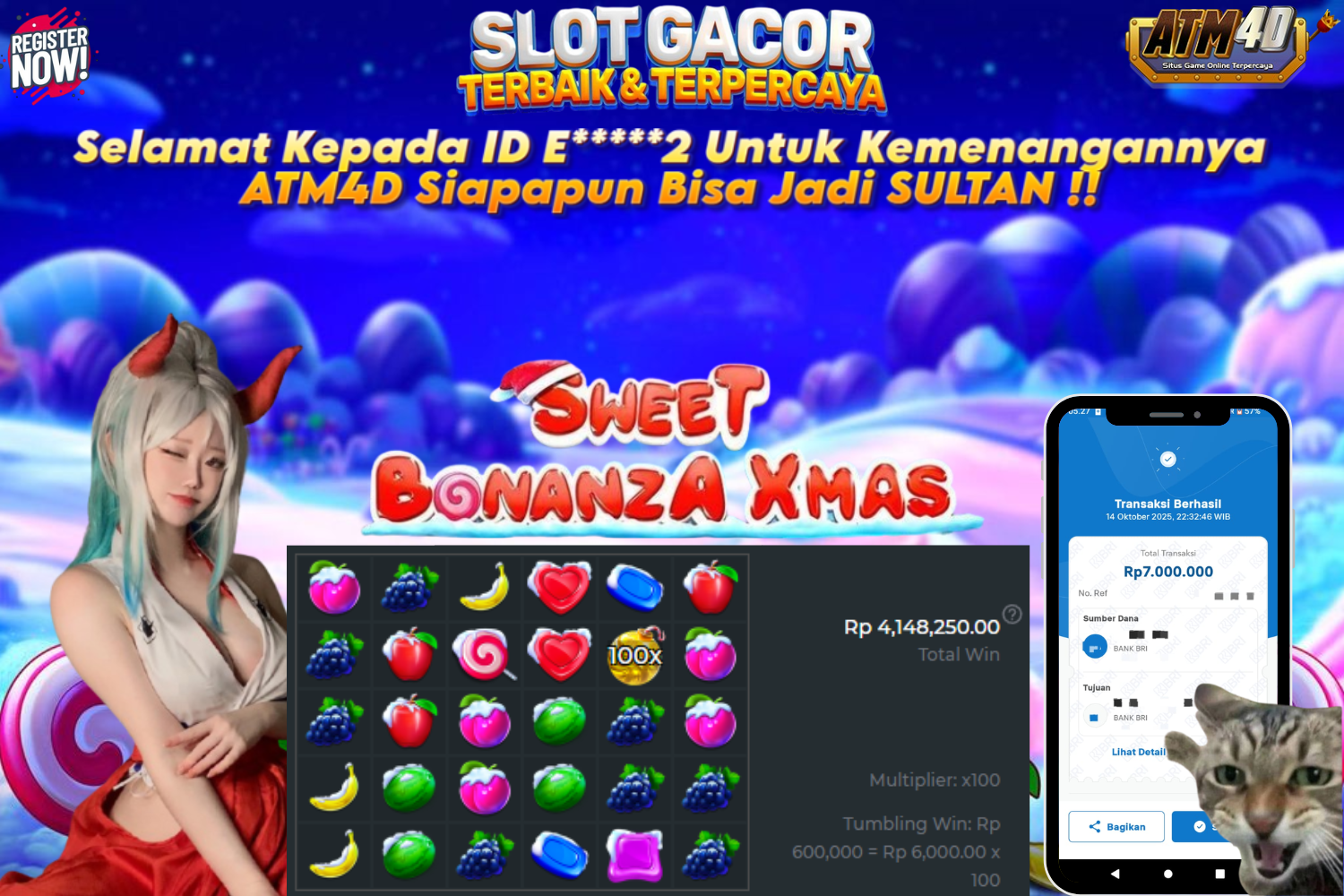 Jangan lewatkan kesempatan untuk meraih kemenangan besar. Daftar sekarang di ATM4D dan rasakan pengalaman bermain slot terbaik yang pernah ada! Putar gulungan, menangkan jackpot, dan jadilah bagian dari komunitas pemain sukses kami!